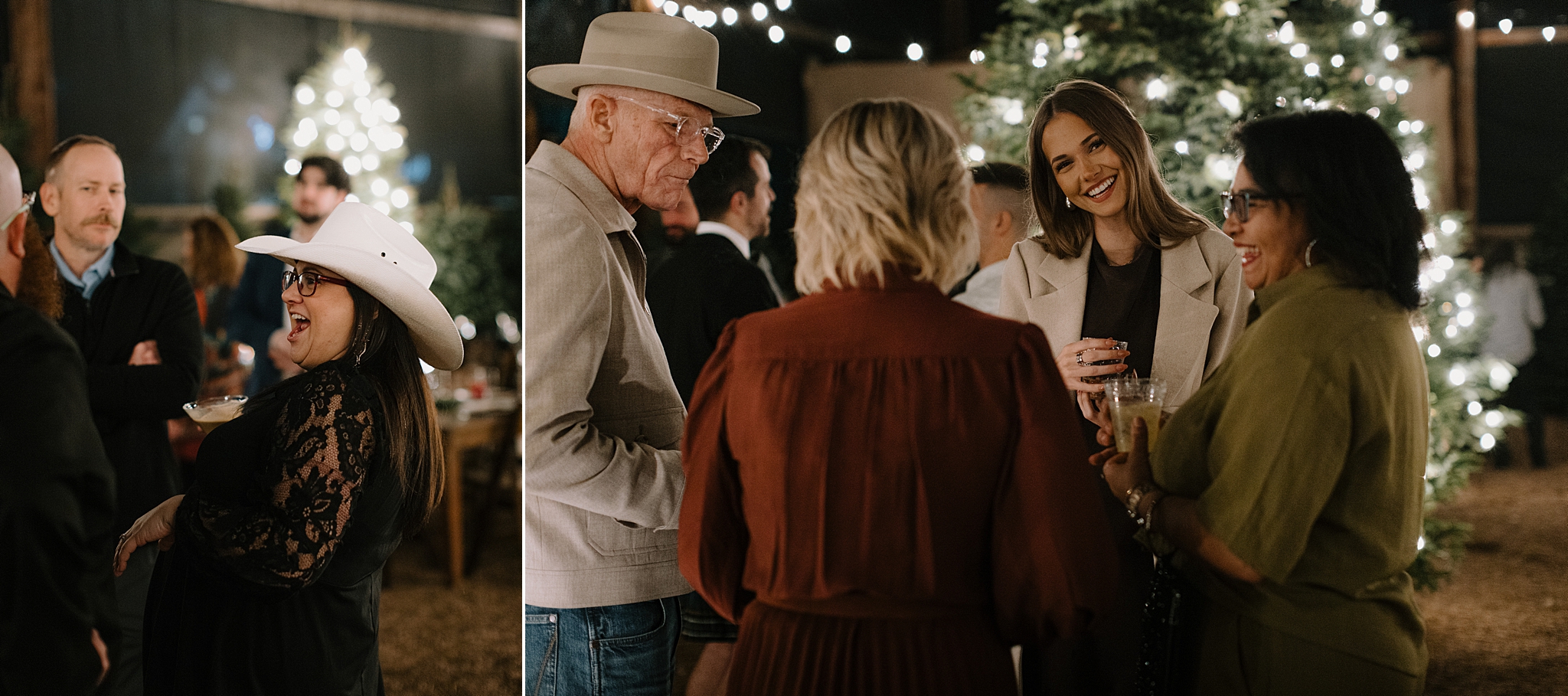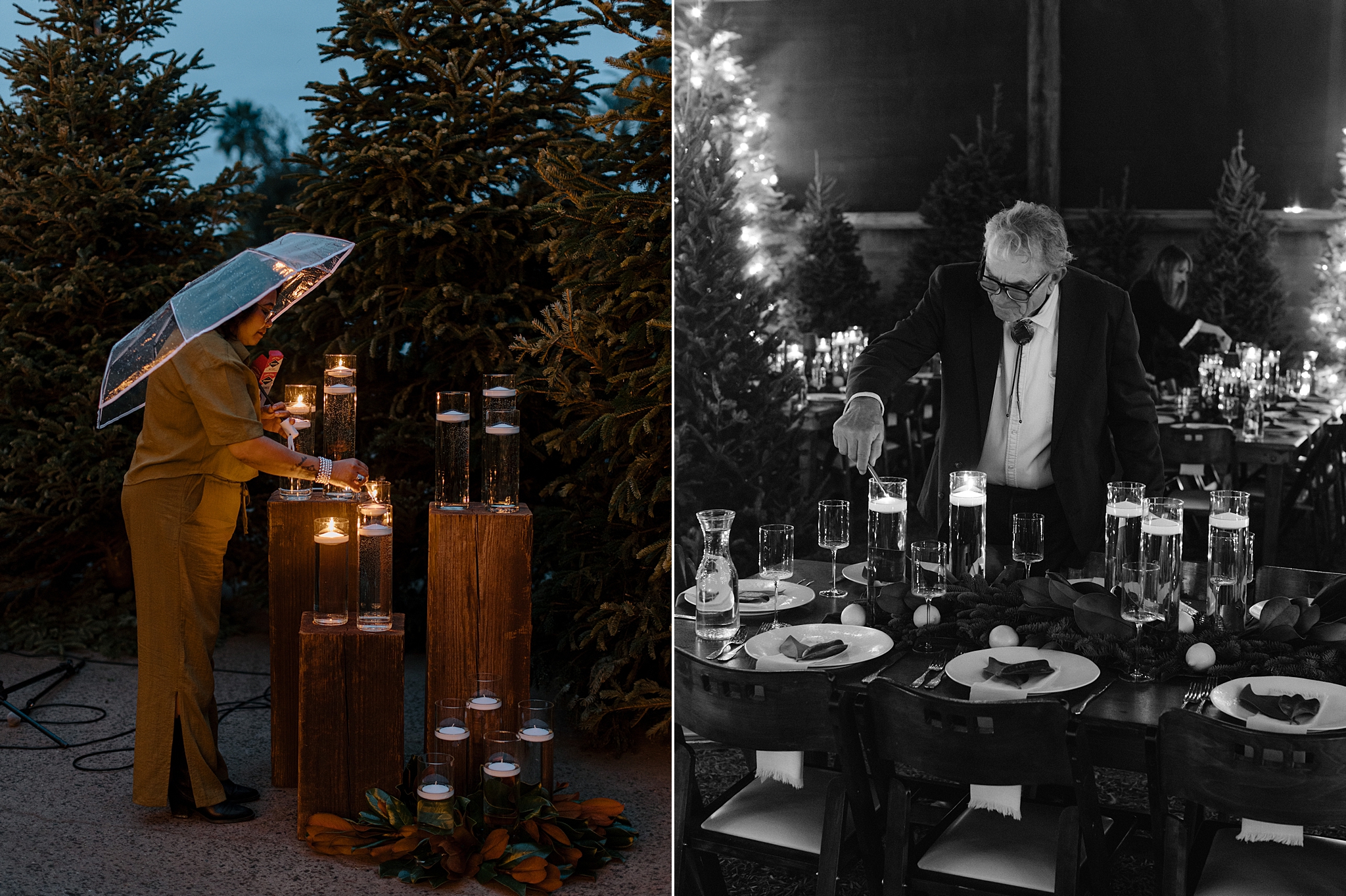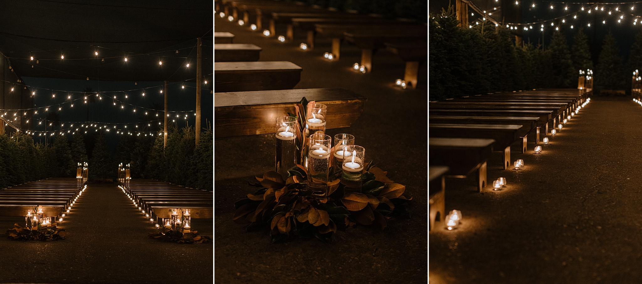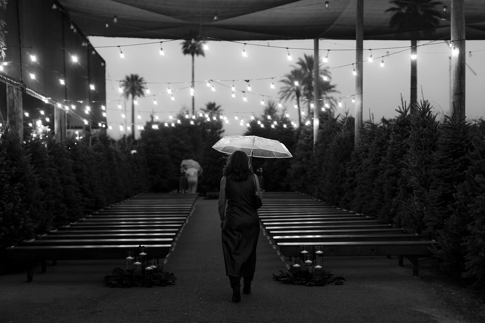 Their wedding took place on New Year’s Eve at Whitfill Nursery, a place with deep family roots. As the sun went down, the nursery transformed into something quietly magical. Candlelight lined the ceremony space, twinkle lights stretched overhead, and the desert evening settled in around everyone. Even with 150+ guests, the day never felt overwhelming. It felt intentional and grounded.