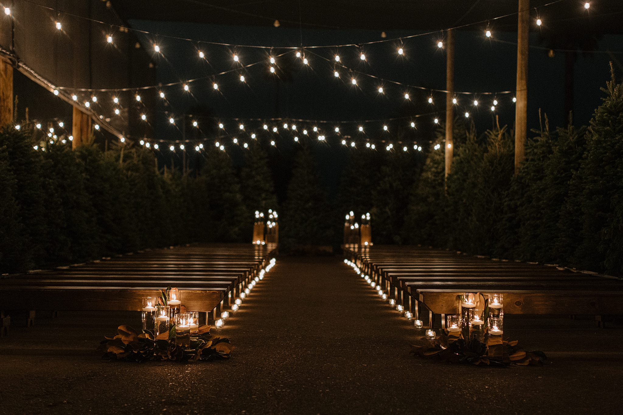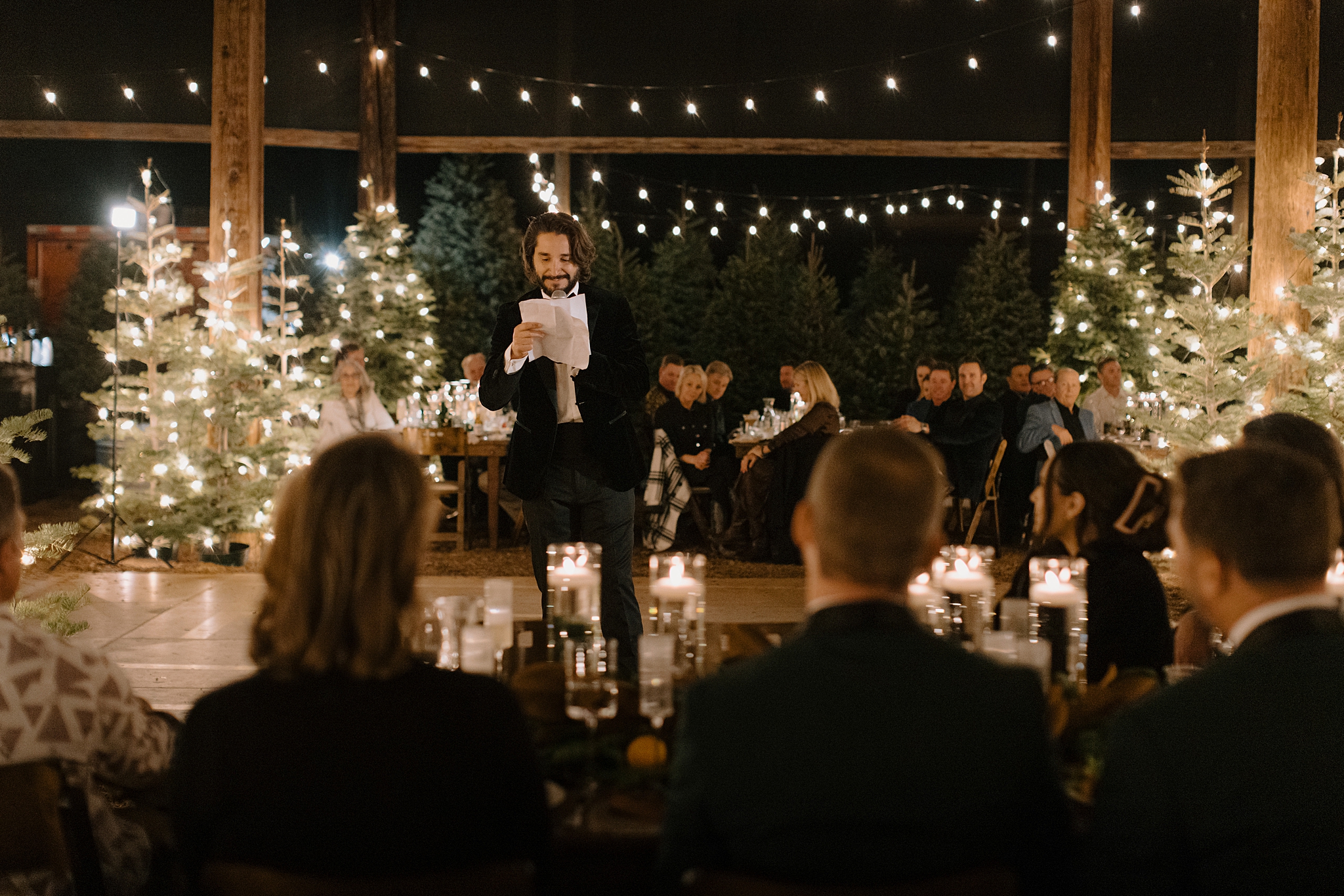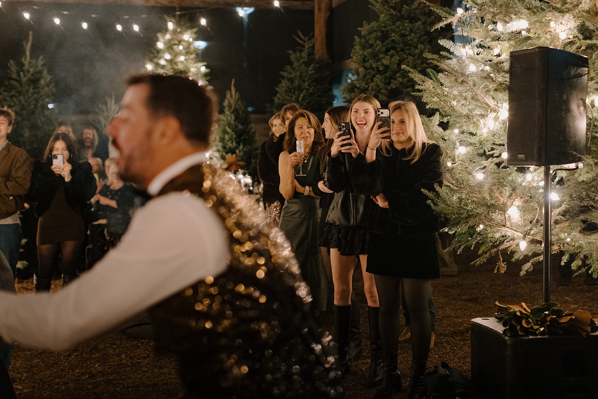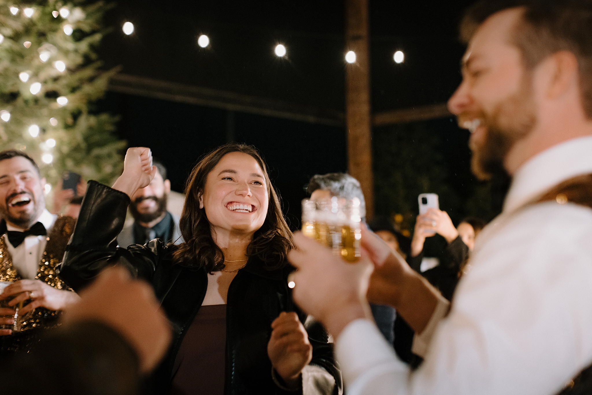 Their wedding took place on New Year’s Eve at Whitfill Nursery, a place with deep family roots. As the sun went down, the nursery transformed into something quietly magical. Candlelight lined the ceremony space, twinkle lights stretched overhead, and the desert evening settled in around everyone. Even with 150+ guests, the day never felt overwhelming. It felt intentional and grounded.
