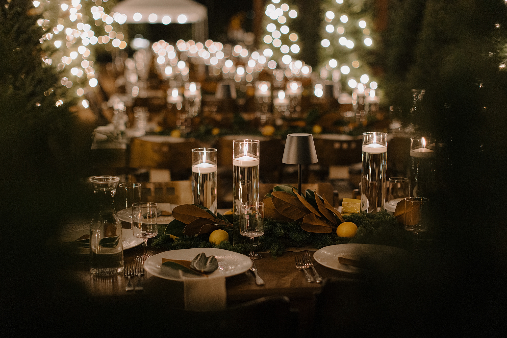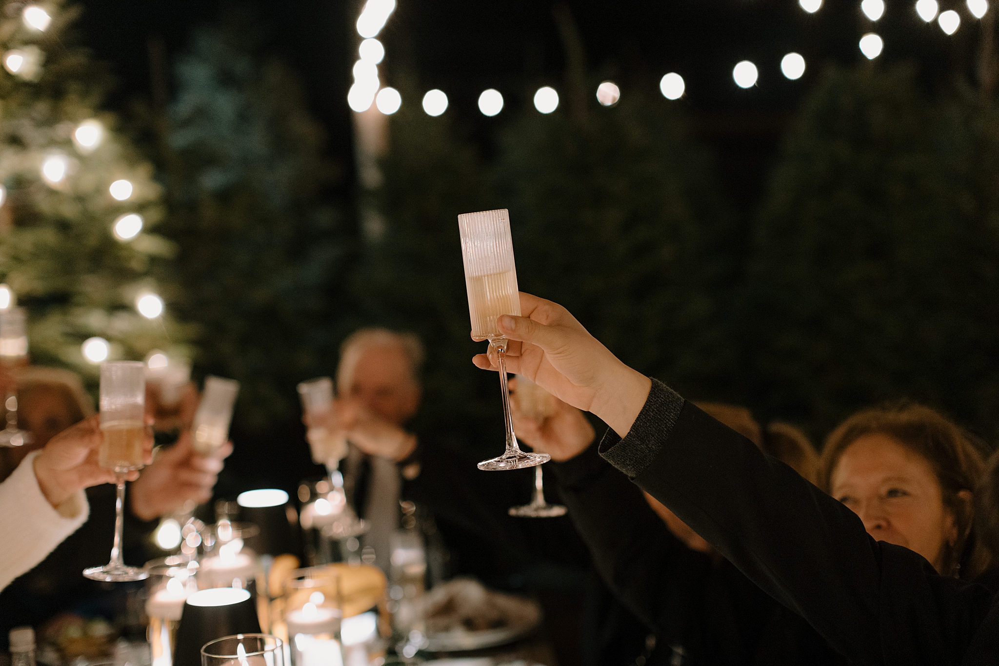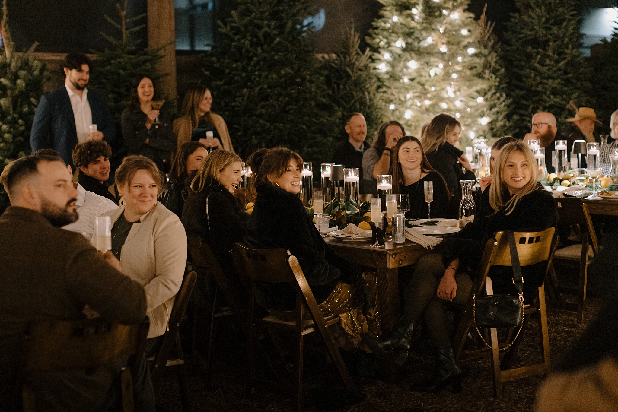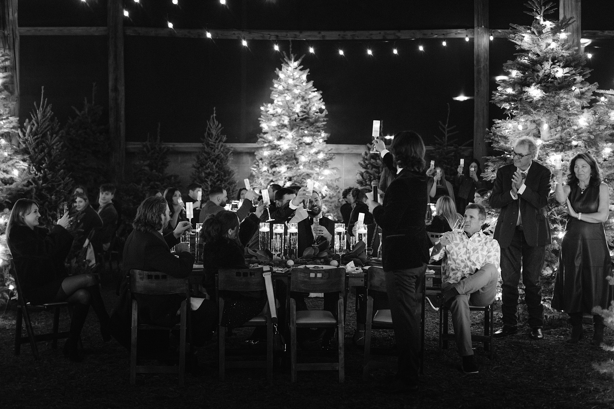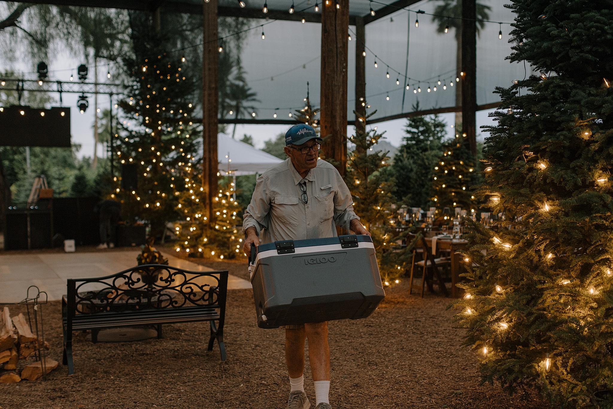 Their wedding took place on New Year’s Eve at Whitfill Nursery, a place with deep family roots. As the sun went down, the nursery transformed into something quietly magical. Candlelight lined the ceremony space, twinkle lights stretched overhead, and the desert evening settled in around everyone. Even with 150+ guests, the day never felt overwhelming. It felt intentional and grounded.