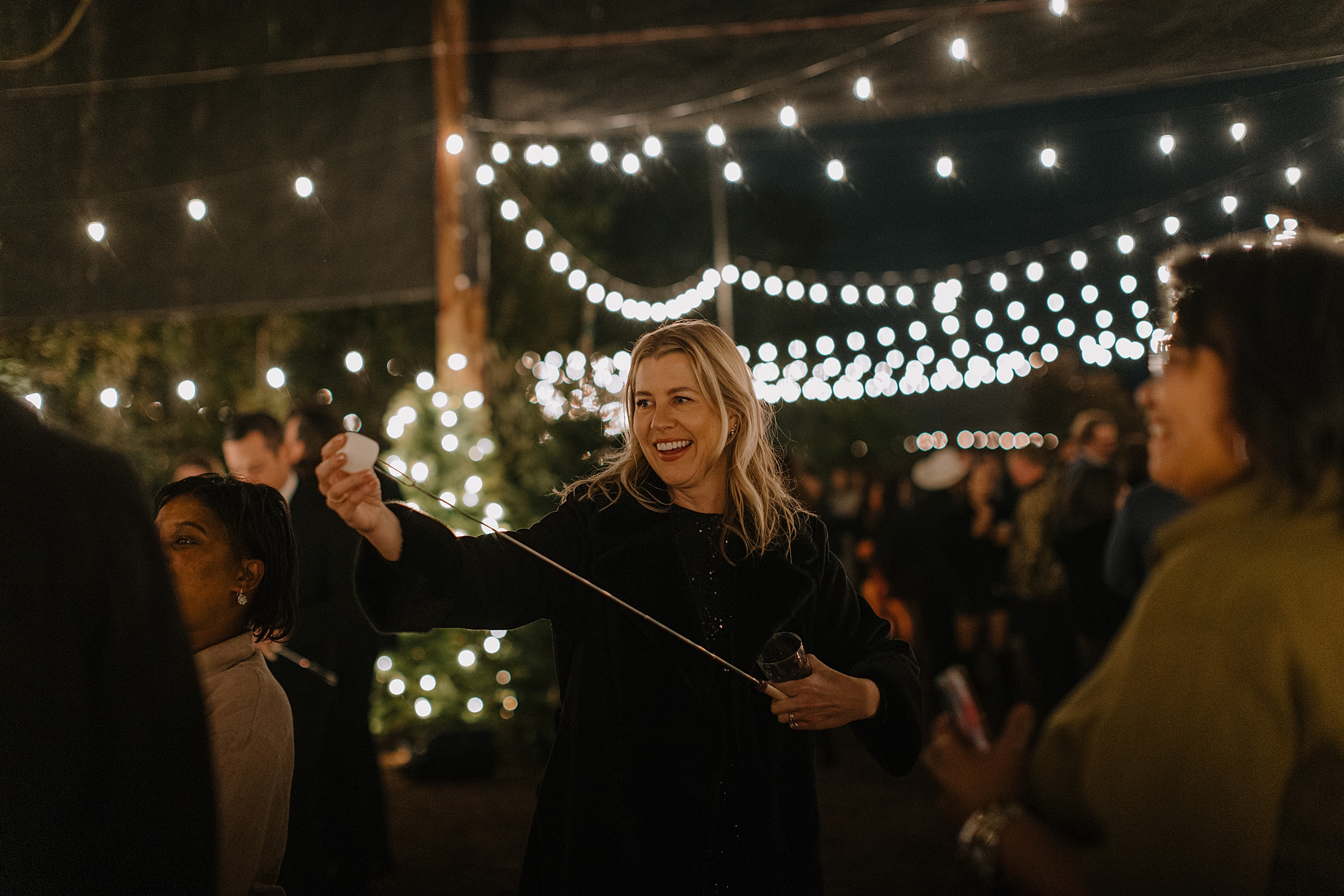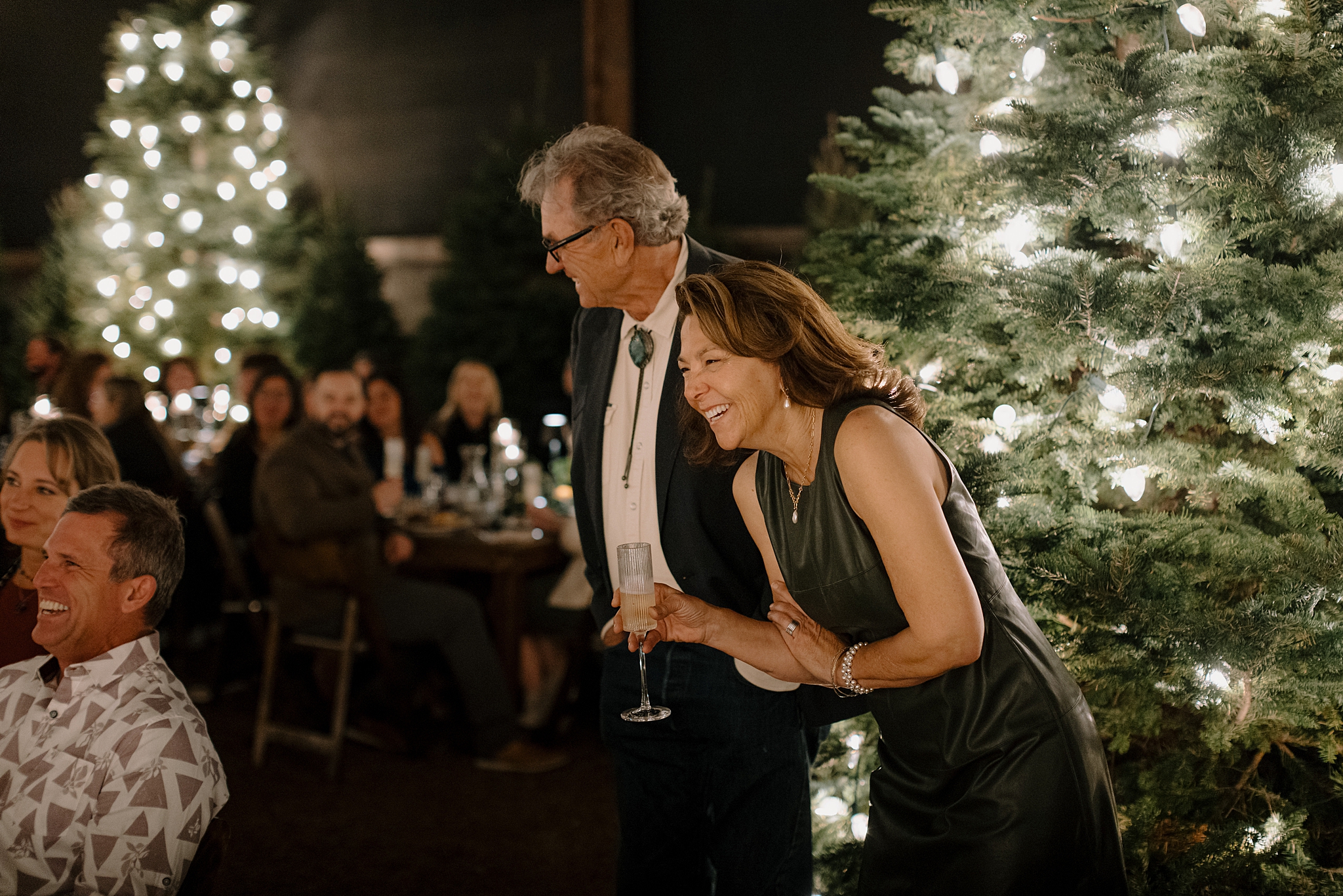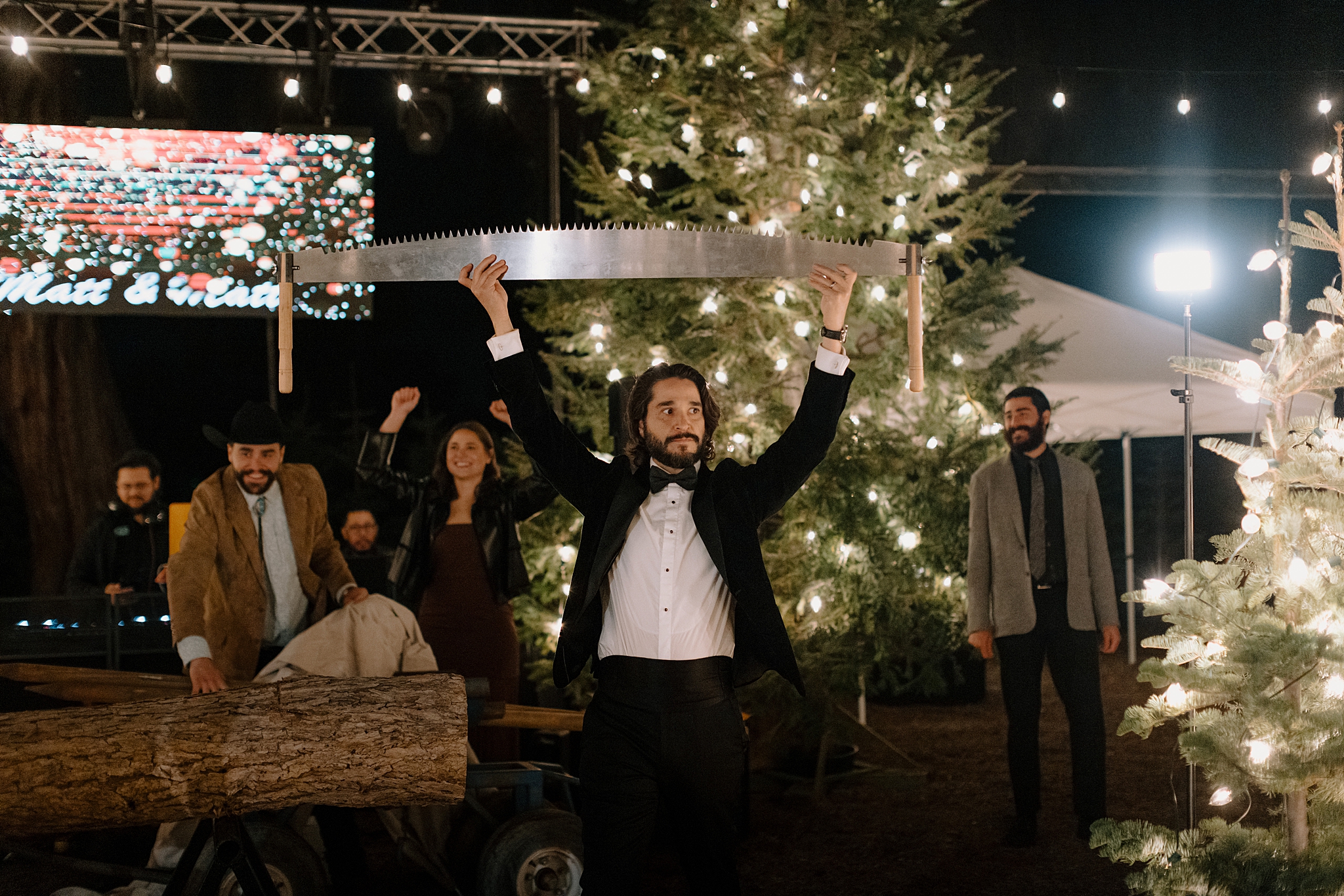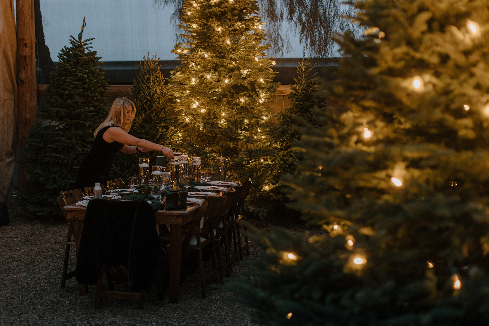 Their wedding took place on New Year’s Eve at Whitfill Nursery, a place with deep family roots. As the sun went down, the nursery transformed into something quietly magical. Candlelight lined the ceremony space, twinkle lights stretched overhead, and the desert evening settled in around everyone. Even with 150+ guests, the day never felt overwhelming. It felt intentional and grounded.