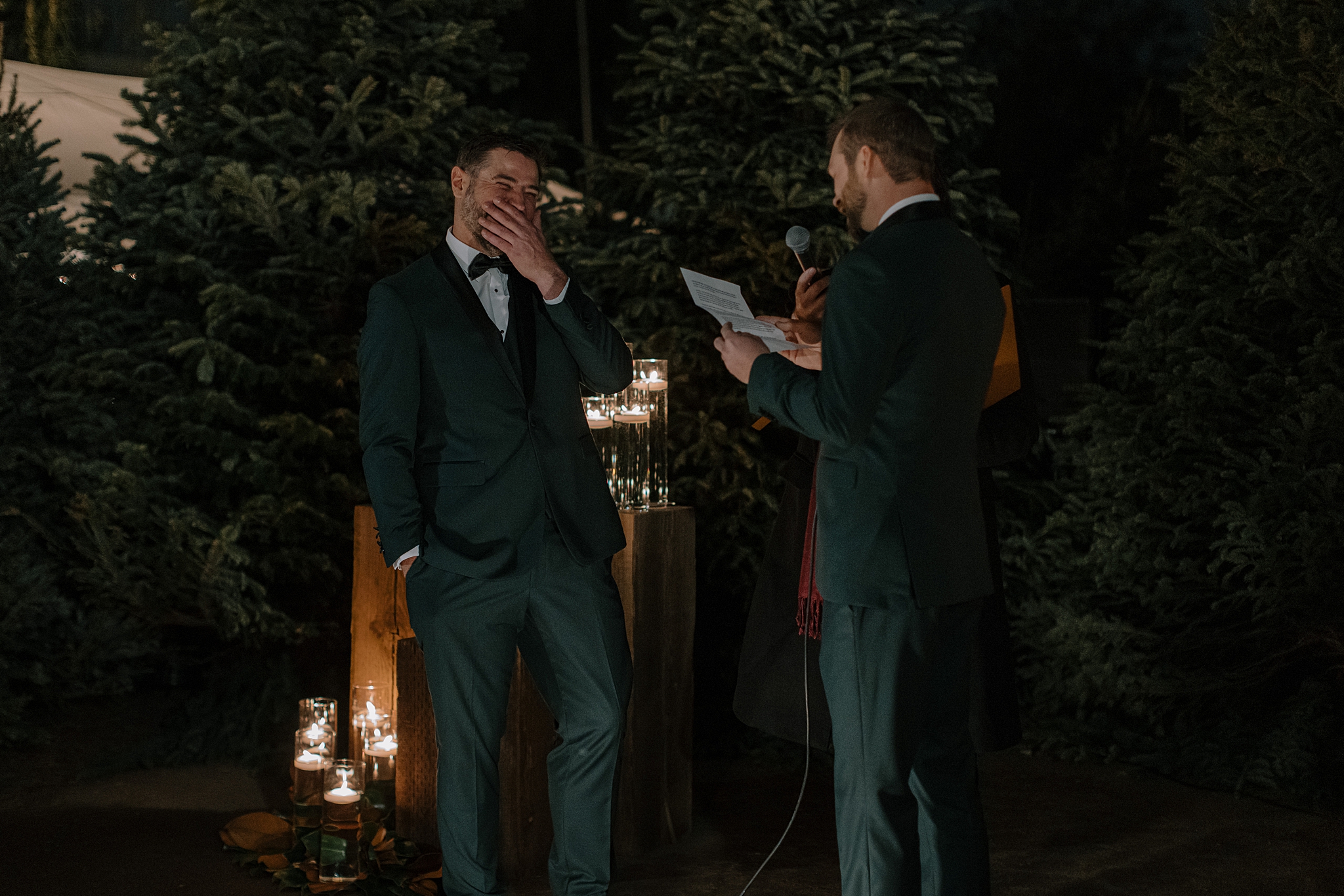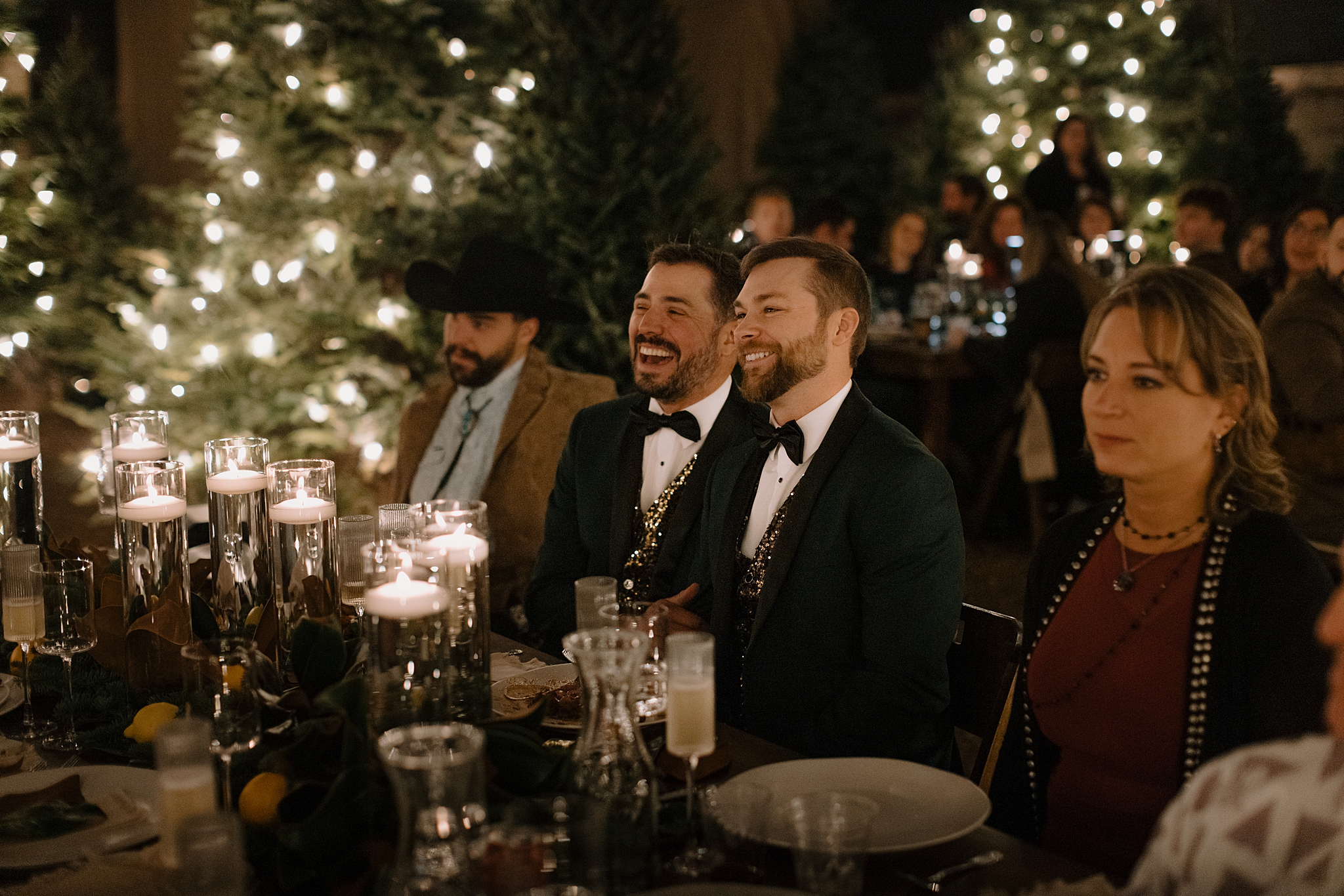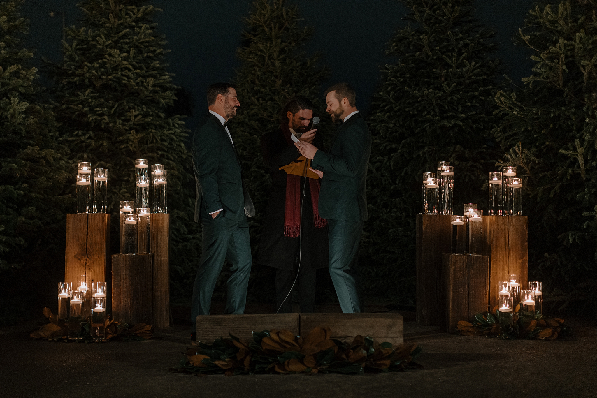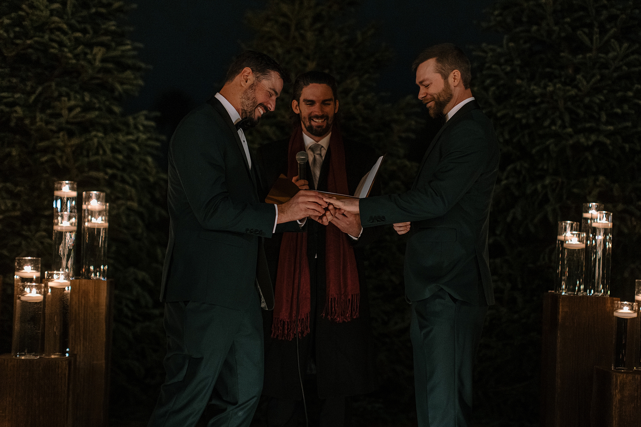 As guests gathered that evening, the ceremony space glowed in anticipation. When Matt and Matt walked in together, you could feel that anticipation shift into something collective. This wasn’t just a ceremony; it was a room full of people who genuinely loved these two and were ready to celebrate them. And that joy carried through the evening. Friends and family laughed easily, conversations lingered, and there was a sense that everyone understood the weight of the moment without needing to rush past it.